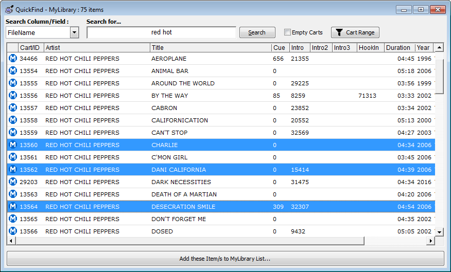 Cartwall - MyLibrary supports ALL fields within the database/tag-data but DAC